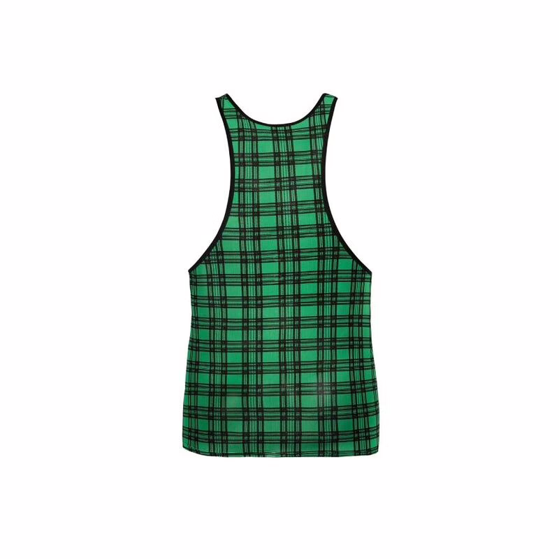 Licra suave con estampado de cuadros verdes y negros