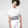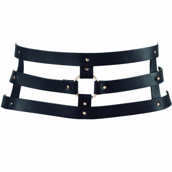 La correa situada en el medio de este accesorio esconde un secreto: desátala de tu cintura para descubrirlo. Comienza por soltar esta correa de tu cuerpo, como ves se divide en dos; desengancha de la correa izquierda la extensión. Continua desenganchando en la parte frontal del cinturón, ambos extremos, tanto el izquierdo como el derecho, de las correas verticales.
