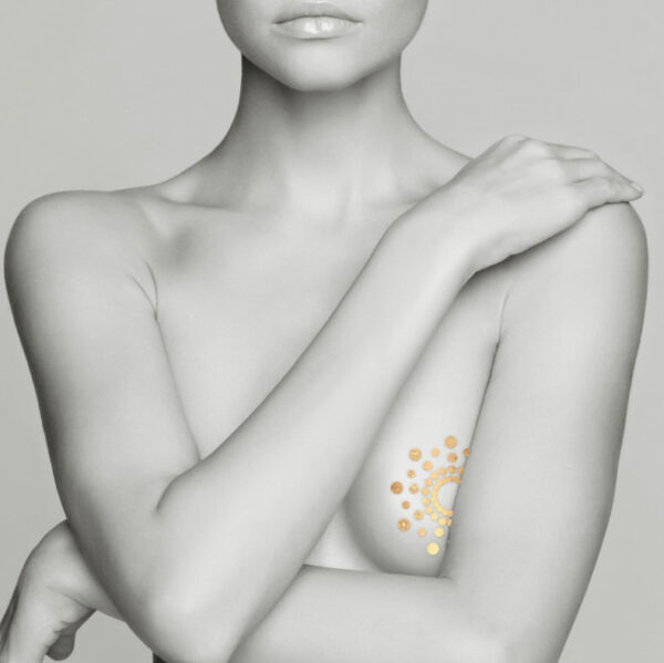 Estos tatuajes temporales en forma circular se adaptan a todo tipo de pechos y los realza. Mantienen la forma icónica del Mimi clásico, decorando la piel de una manera muy sensual, destacando la belleza del cuerpo femenino.