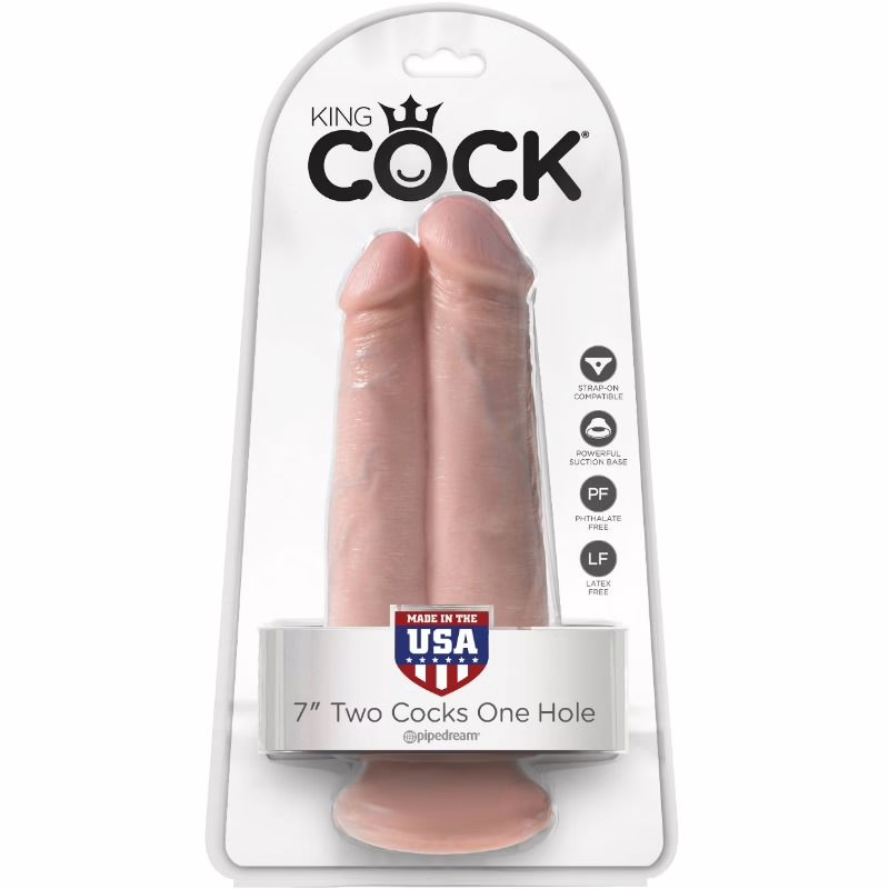 King Cock satisface tus fantasías 2 en 1 con dildo esculpido como penes realísticos. Exquisitamente artesanal y flexible, este King Cock doble provee una excitante estimulación y una satisfactoria sensación de placer. Su potente ventosa hace que puedas adherirlo a casi cualquier superficie plana, incluidos los arnés compatibles.