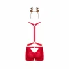 ¡El juguetón Sr. Reno está de humor para divertirse! El arnés rojo picante y los tentadores calzoncillos son un par muy sexy y sensual, listo para hacer travesuras en el dormitorio. La diadema con orejas de reno es un elemento sumamente encantador que complementa a la perfección el conjunto.