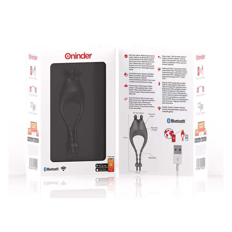 ONINDER™ te permite aumentar o disminuir la intensidad de las vibraciones. Con la vibración múltiple puedes hacer más cosas: elige entre diferentes patrones de vibración o cambia de motor cuando utilices un juguete de doble motor.
