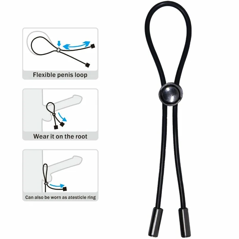 El bucle para el pene está controlado por una perla sintética para que pueda colocarse sobre el pene y los testículos. Puedes ajustar individualmente el diámetro al tamaño del pene. De esta manera, la intensidad del efecto de restricción del flujo sanguíneo se puede ajustar según los deseos personales.